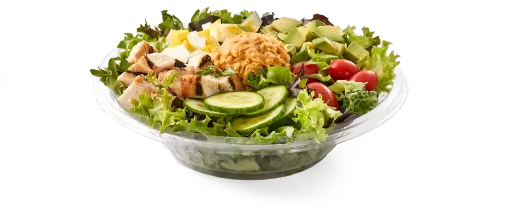 - Mediterranean Salad (390 Cal): Packed with flavor, olives, and cheese.
